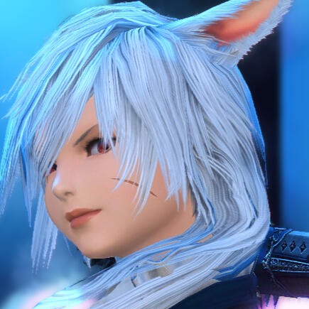 Personality: A stoic and slightly hot headed Miqo'te, Iris has a small competitive streak, and rarely backs down from a fight. She used to be rather aloof and reserved, but several encounters in her life has led her to opening up. Though she still seems quiet at times, she's learning to be much more outgoing. She also runs a tavern known as the Silver Talon.Appearance: Iris has long white hair that she keeps over her left shoulder with a spiky, right-facing fringe. She has crimson red eyes and sharp Seeker pupils. Her right cheek has a dark blue insignia, and scars line her right eye and left cheek.Main Jobs: Viper, Gunbreaker, Summoner, Sage, MachinistLikes: