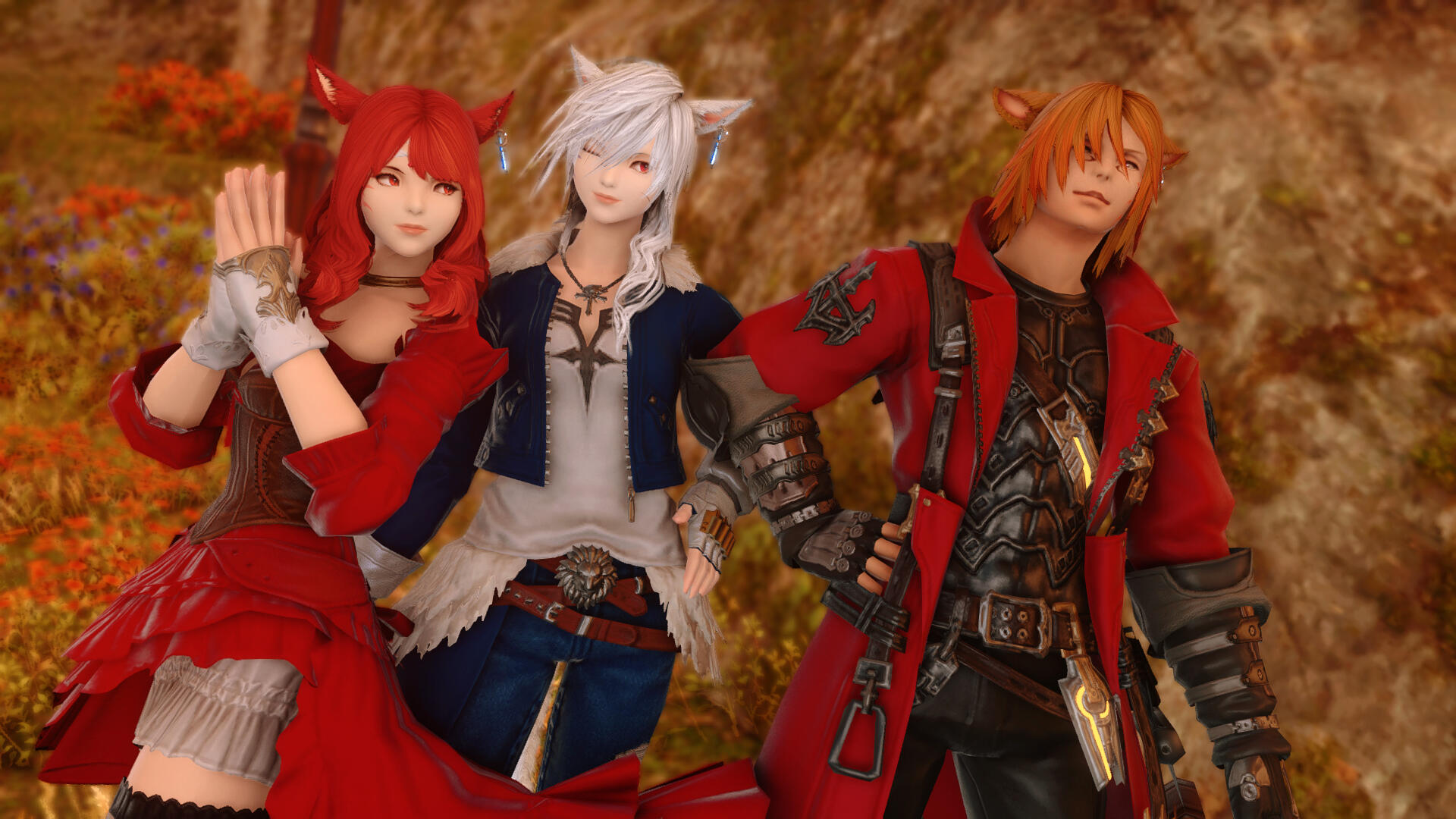 Having disregarded her tribal name altogether and not abiding to old Miqo'te traditions, it's no surprise that Iris doesn't share very close bonds with her tribe She does, however, meet with her siblings every so often.In particular, her bond with her brother I'rehn is a little complicated. Once, she would have said she resented him. Though they reconciled a little recently, he's doting continues to irritate her slightly. Despite this, she can't deny that he's a formidable fighter, and secret took up the katana because of him. She would never admit it to him though, purely out of principle. Little did she know, he had also taken up the gunblade because of her. Perhaps the two are more alike than they think.However, she contacts her younger sister I'hestaya quite often. The two meet up occasionally to catch up, sometimes taking gathering jobs. To Iris, Hestaya is the only close family that truly understood her and wanted to support her the whole way. Sometimes, Iris likes to bring Hestaya along on light adventures and low-risk jobs. After all, having a White Mage at the ready makes any fight a breeze.