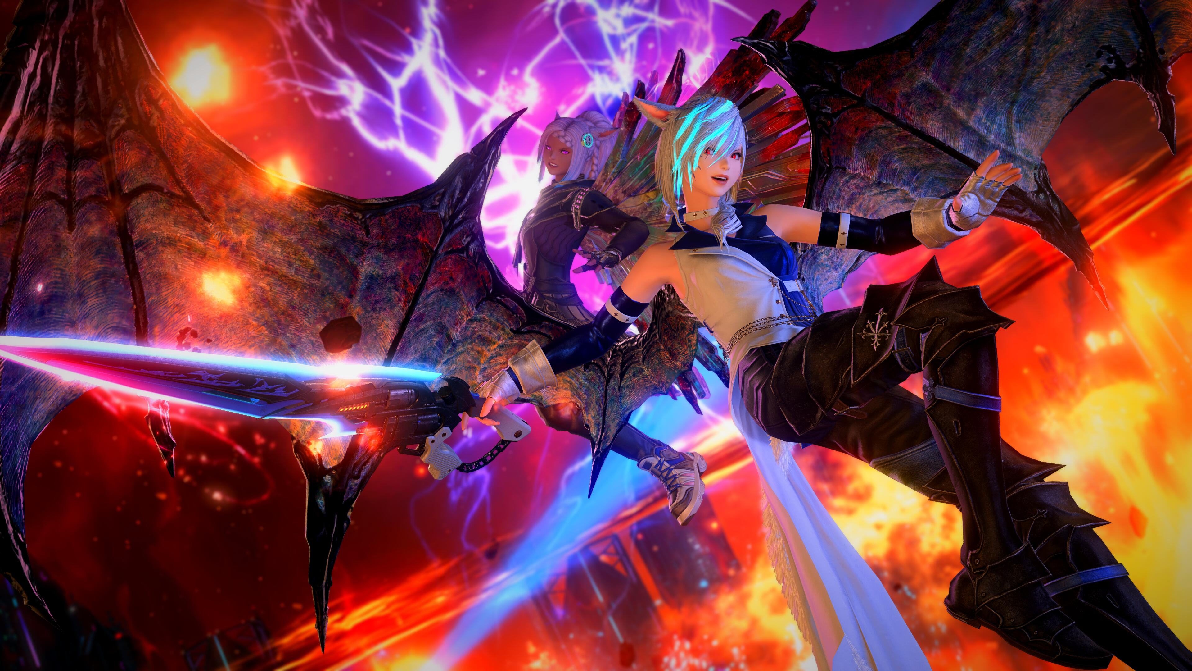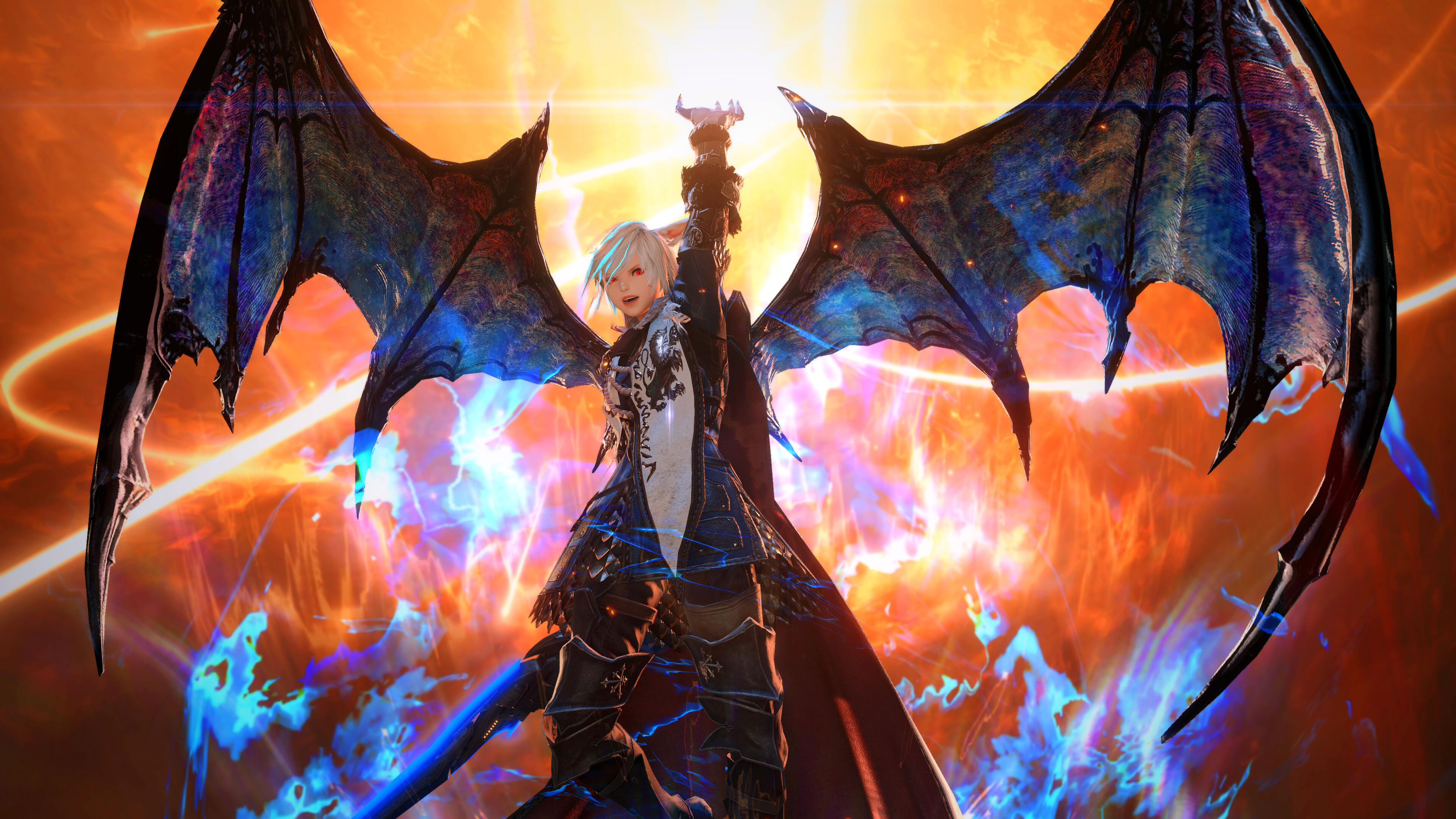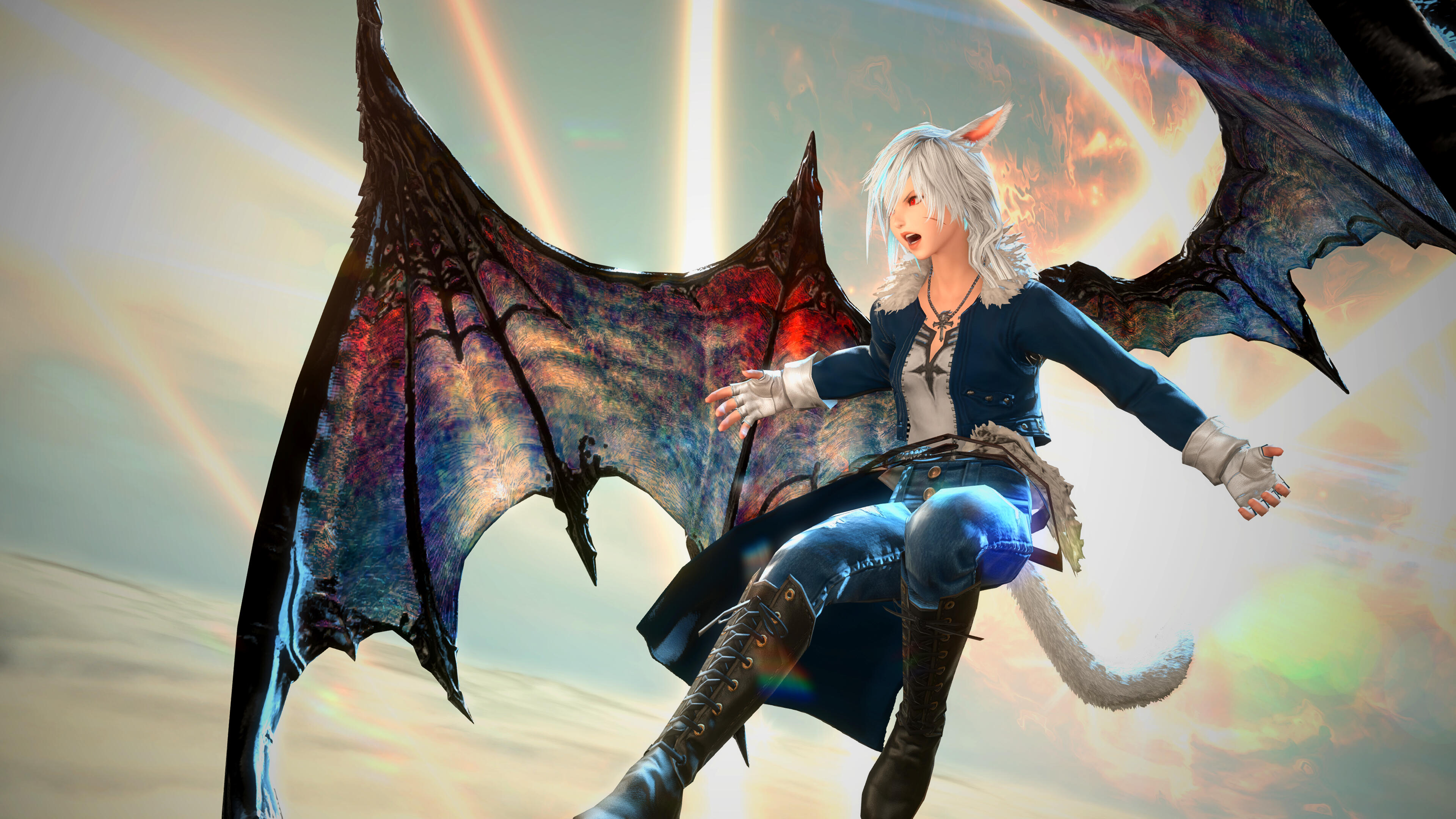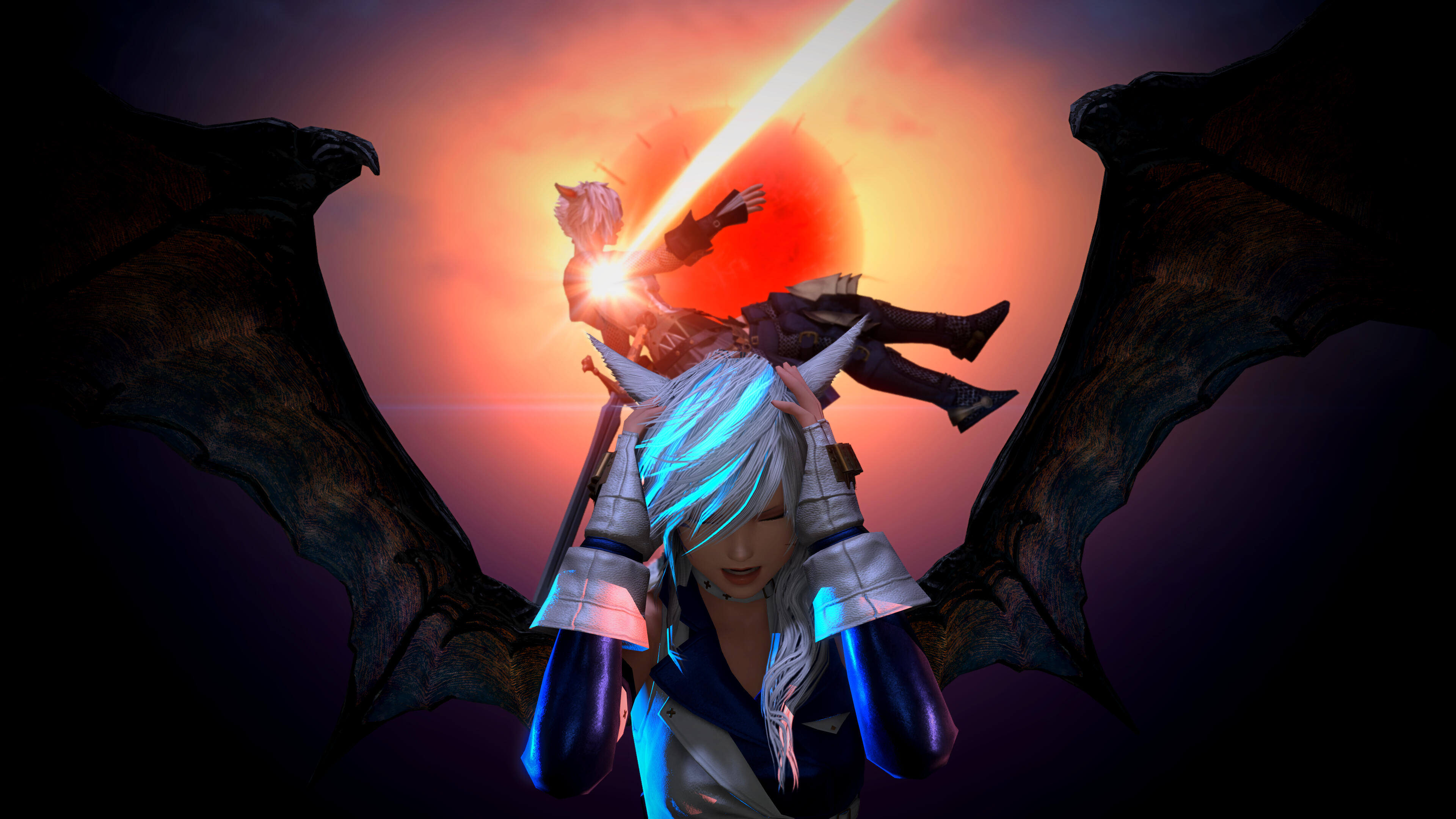 While trying to flee, a fragment of his aether struck Iris in the heart and she fell unconscious. What she didn't realise was that the draconic aether would persist, shrouding her soul and remaining dormant in her core.Over time, however, as Iris grew older, Bahamut began to stir within her. His aether slowly merged with her's, their souls intertwining. Iris started to hear the voice of the Dreadwyrm, his impulses urging her to commit destruction in his name. When she refused his demands, Bahamut attempted to take control of her body. Sprouting draconic wings, Iris almost leveled Coerthas on her lonesome. However, she was able to tame her fragment of Bahamut and cast it back into the depths of her soul. It was her body, and anyone who wished to inhabit it would bow to her.