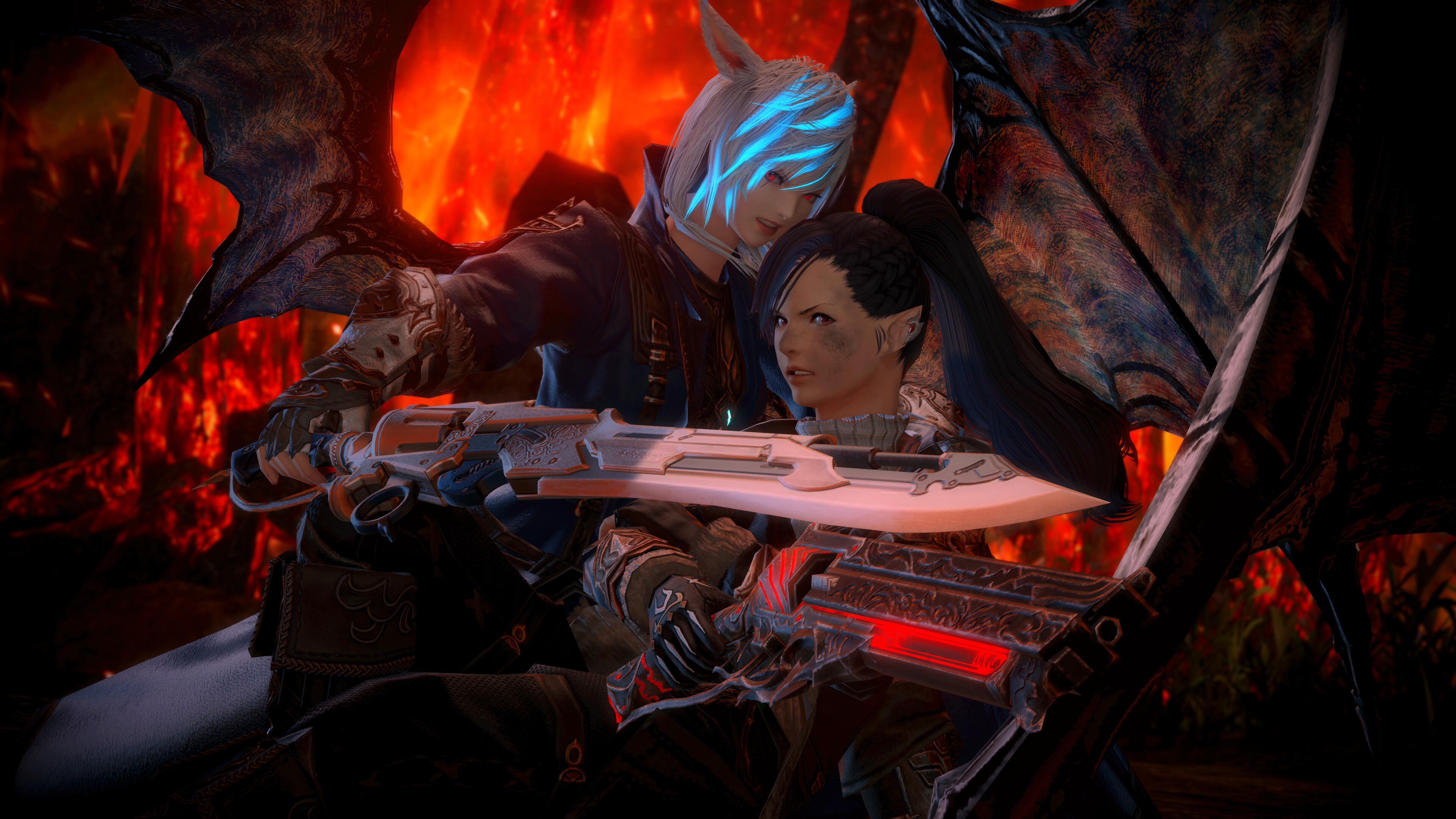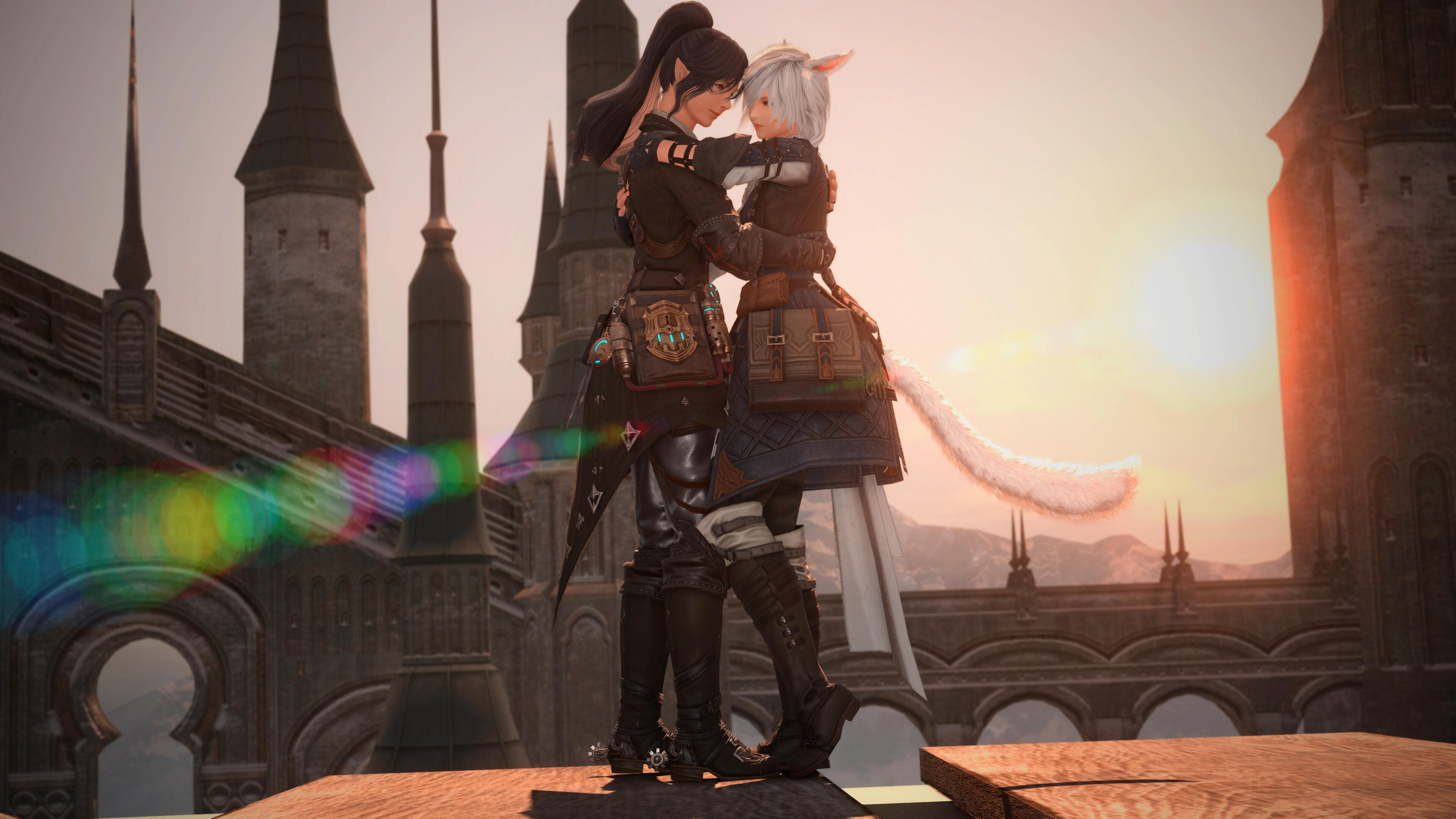 Having disregarded her tribal name altogether and not abiding to old Miqo'te traditions, it's no surprise that Iris doesn't share very close bonds with her tribe She does, however, meet with her siblings every so often.In particular, her bond with her brother I'rehn is a little complicated. Once, she would have said she resented him. Though they reconciled a little recently, he's doting continues to irritate her slightly. Despite this, she can't deny that he's a formidable fighter, and secret took up the katana because of him. She would never admit it to him though, purely out of principle. Little did she know, he had also taken up the gunblade because of her. Perhaps the two are more alike than they think.However, she contacts her younger sister I'hestaya quite often. The two meet up occasionally to catch up, sometimes taking gathering jobs. To Iris, Hestaya is the only close family that truly understood her and wanted to support her the whole way. Sometimes, Iris likes to bring Hestaya along on light adventures and low-risk jobs. After all, having a White Mage at the ready makes any fight a breeze.